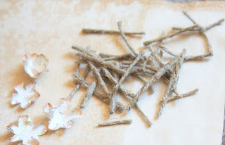Для украшения цветочков я взяла пеньковый шпагат, разрезав его на небольшие кусочки, длиной примерно 1,5-2 см. Вместо шпагата можно использовать, например, вощеный шнур или жесткую хлопковую пряжу